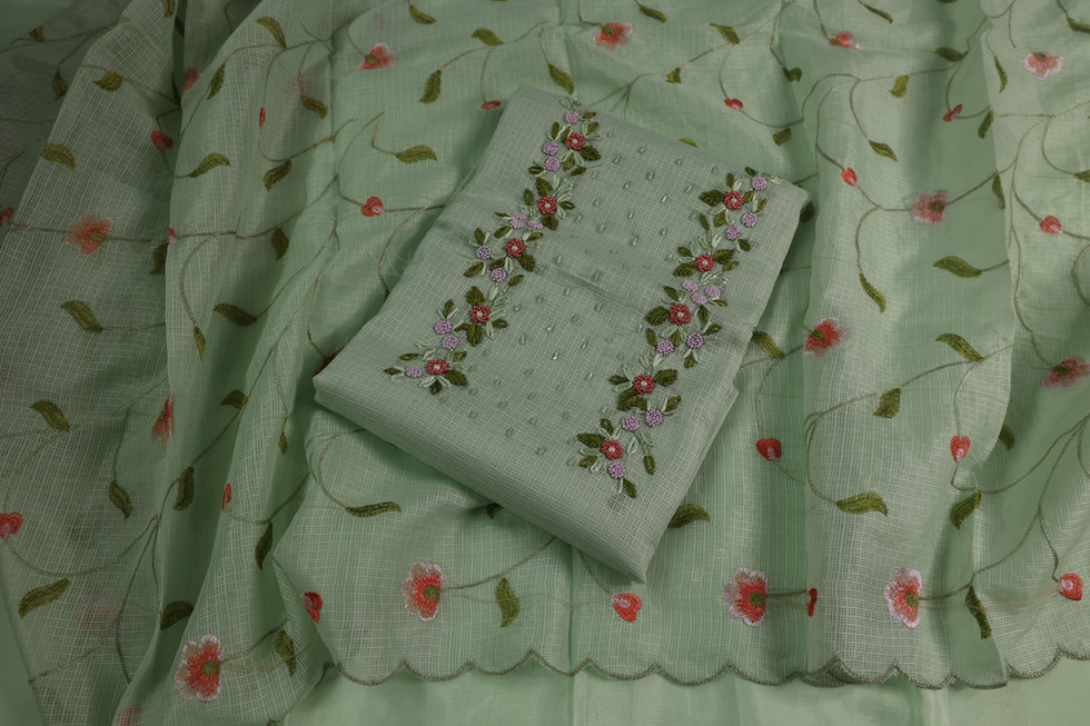 Green Kota doria Beaded work suit with heavy embroidered dupatta