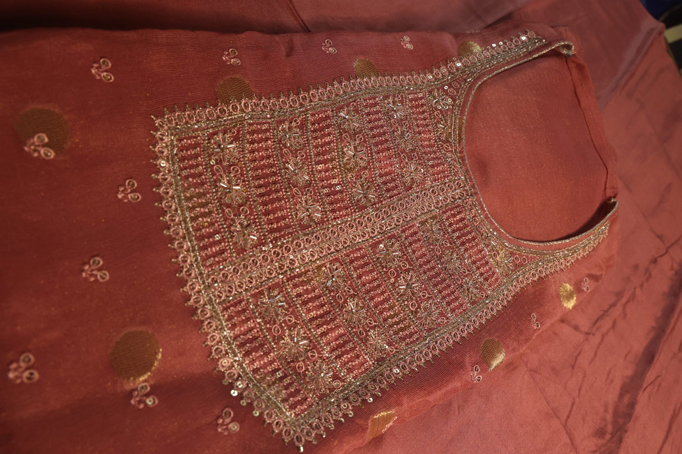 Grace meets tradition this stunning *dusty rose ensemble* with intricate mirror work and delicate embroidery is a must-have for your festive wardrobe. Subtle, elegant, and timeless